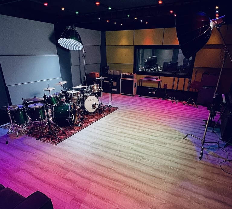 La nostra sala di ripresa da 60 metri quadri ti permette di registrare l'intera band insieme, in multitraccia, mantenendo quella connessione tra musicisti che fa la differenza tra una traccia tecnicamente perfetta e un brano che ha un'anima.